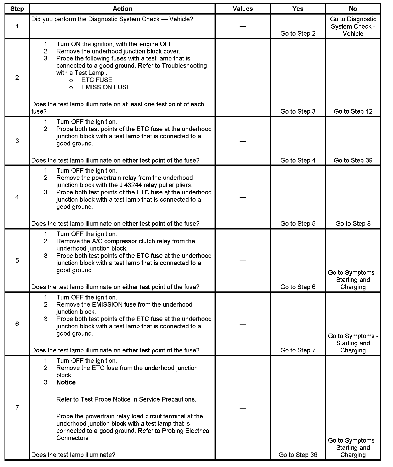 The powertrain relay system diagnosis table assumes that the vehicle battery is fully charged. Refer to Battery Inspection/Test. Battery Inspection/Test