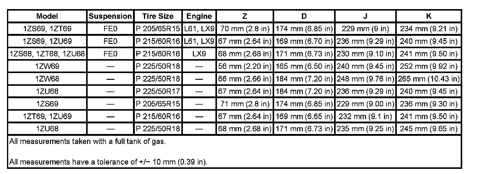 Trim Height Specifications: