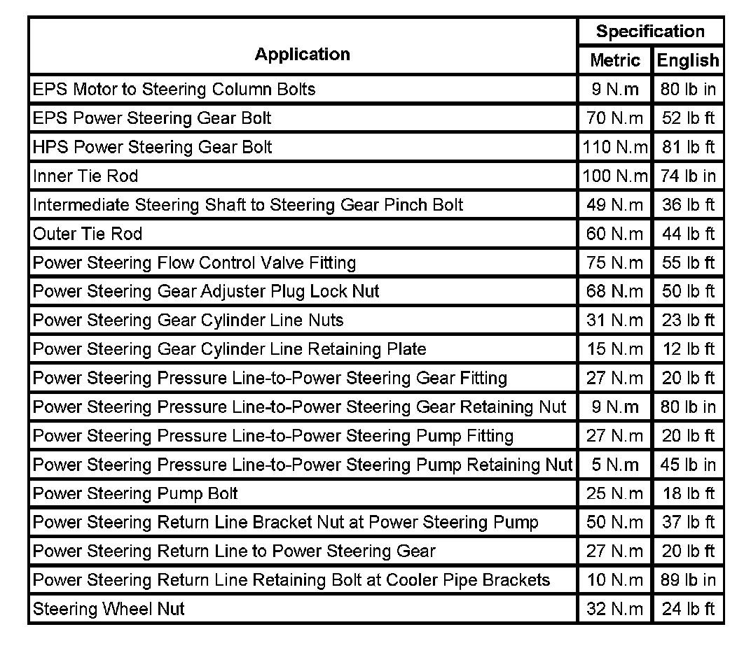 Fastener Tightening Specifications: