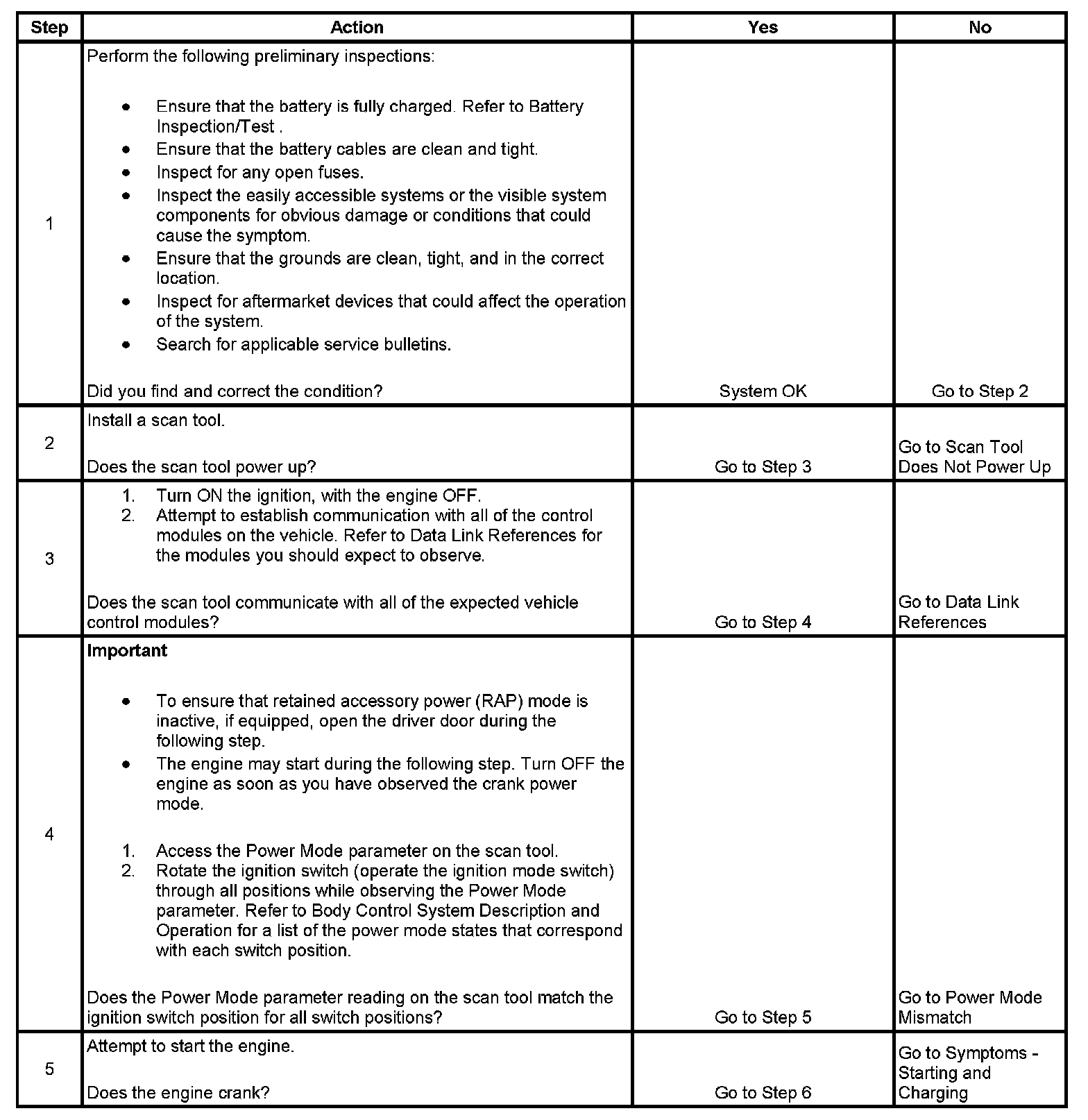 4. A Power Mode Master, which is operating in the incorrect power mode based on key position, may cause other symptoms and/or DTCs to set. The information in Power Mode Mismatch will correct the condition before checking for module DTCs or symptoms.