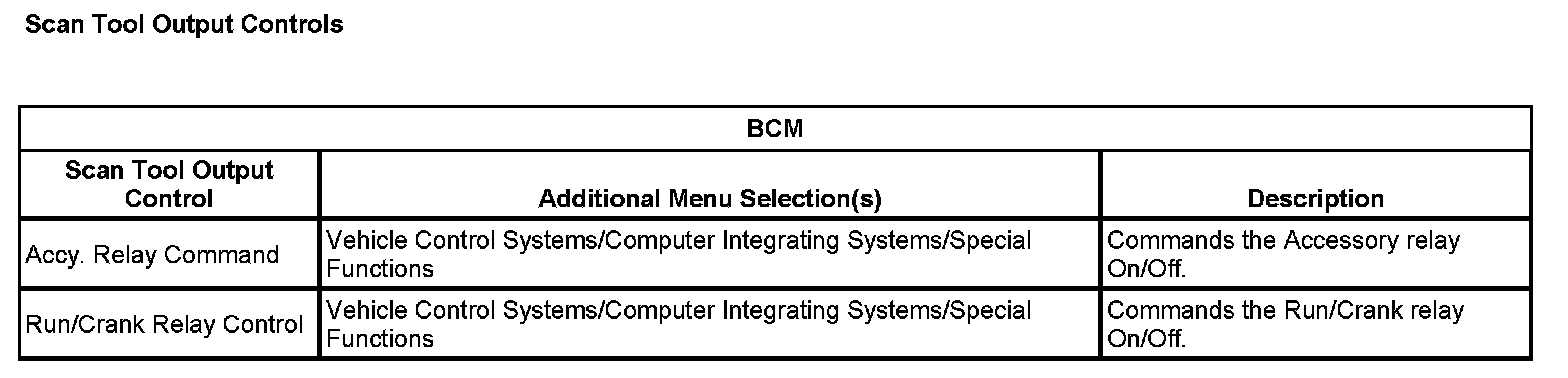 Scan Tool Output Controls: