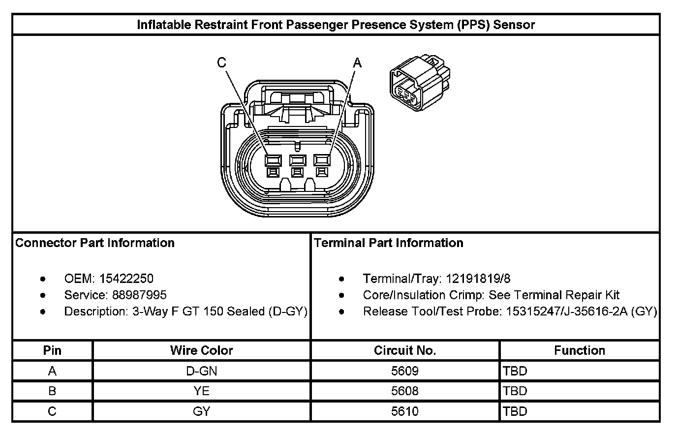 Inflatable Restraint Front Passenger Presence System (PPS) Sensor: