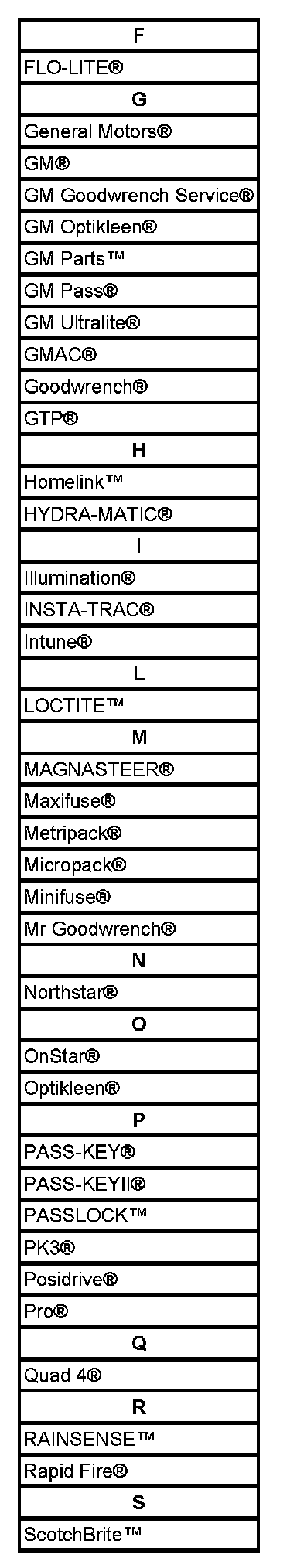 Listed are Registered Trademarks ((R)) or Non-Registered Trademarks ((TM)) which may appear in this service data.