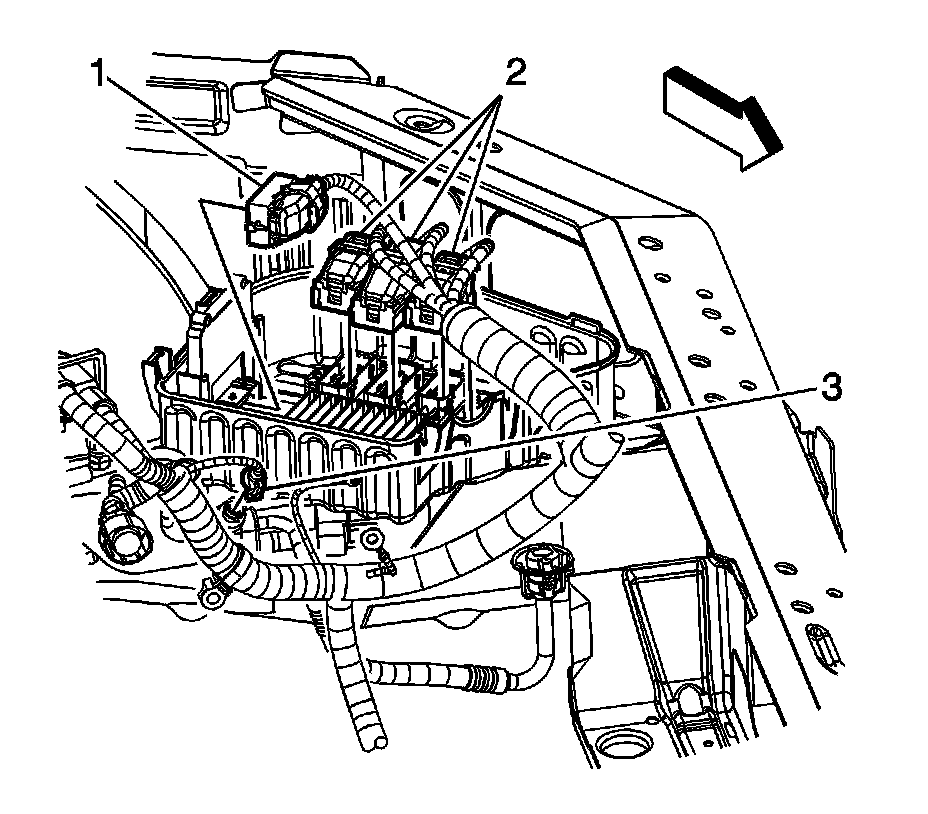 5. Disconnect the ECM electrical connectors (2).
