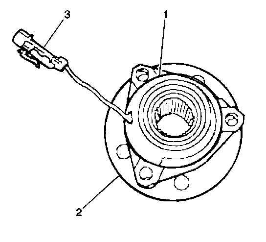 If a speed sensor or a ring needs replacement, replace the entire hub and bearing assembly. Do not service the harness pigtail individually because the harness pigtail is part of the sensor. Refer to Wheel Bearing/Hub Replacement - Front.