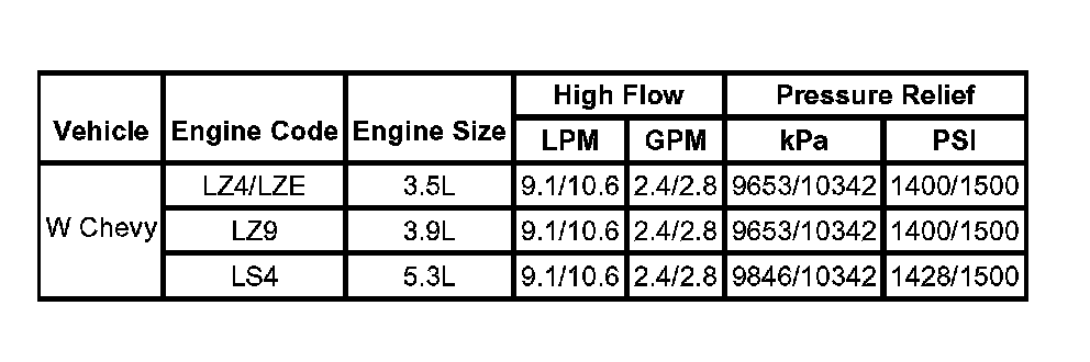 Power Steering Pump Specifications: