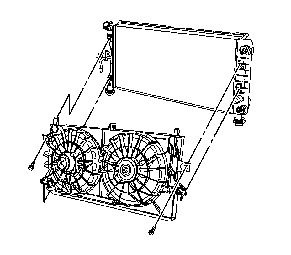 Important: Ensure the right and left edge of the fan shroud engages the radiator slots.