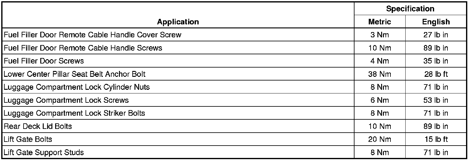 Fastener Tightening Specifications