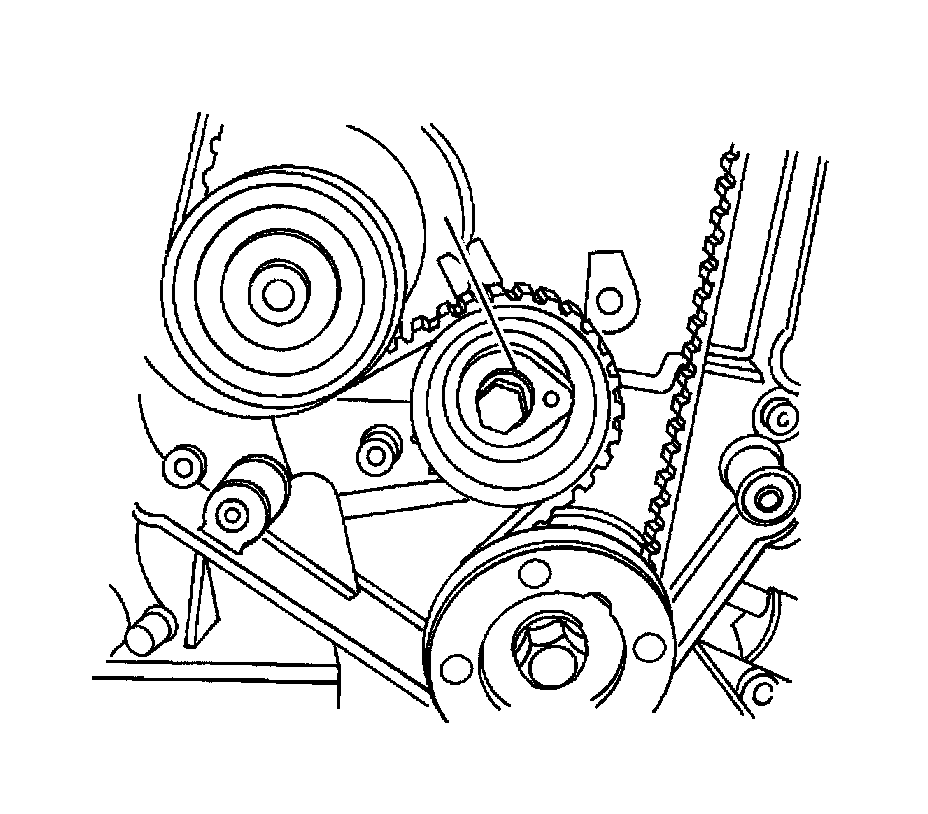 23. When the adjust arm pointer of the timing belt automatic tensioner is aligned with the notch on the timing belt automatic tensioner bracket, the belt is tensioned correctly.