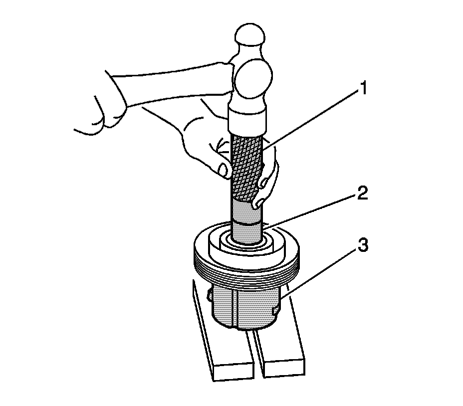 Notice: Do not support the rotor/hub assembly by resting the compressor pulley on a flat surface. Always support the rotor/hub assembly by securely resting the hub on a stable flat surface. The compressor pulley face could be damaged.