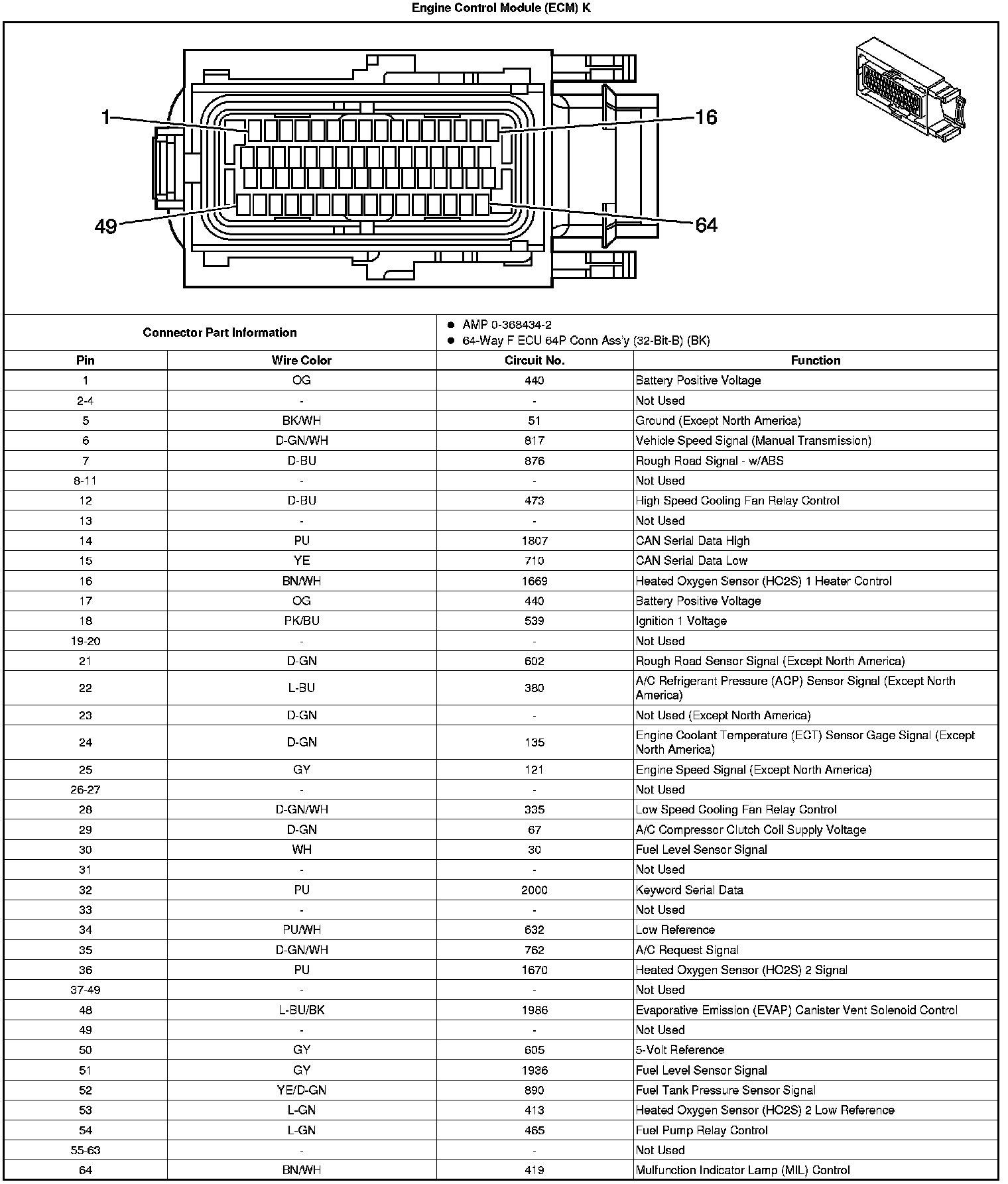 Engine Control Module (ECM) Connector End Views