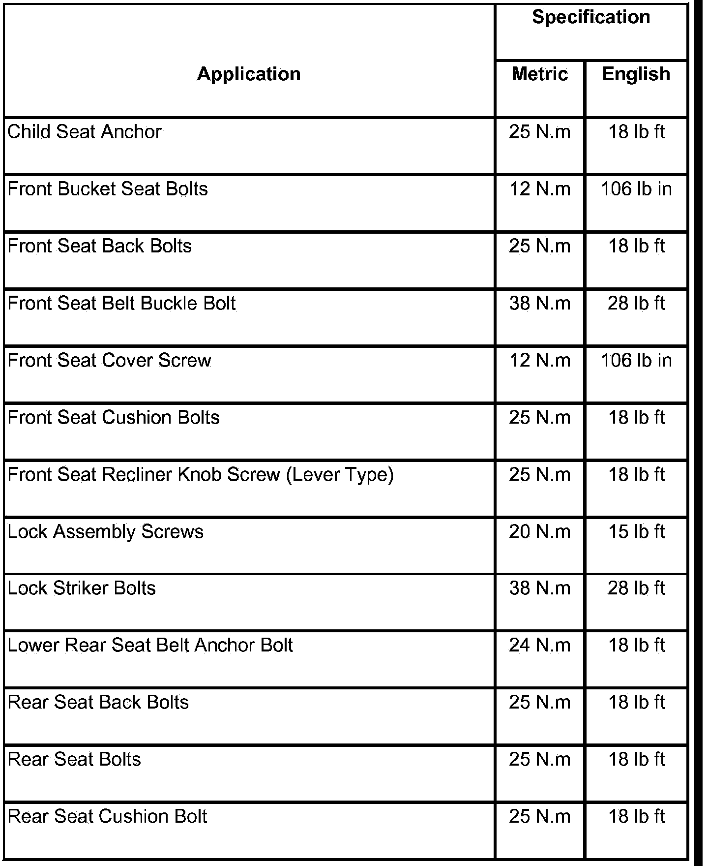 Fastener Tightening Specifications