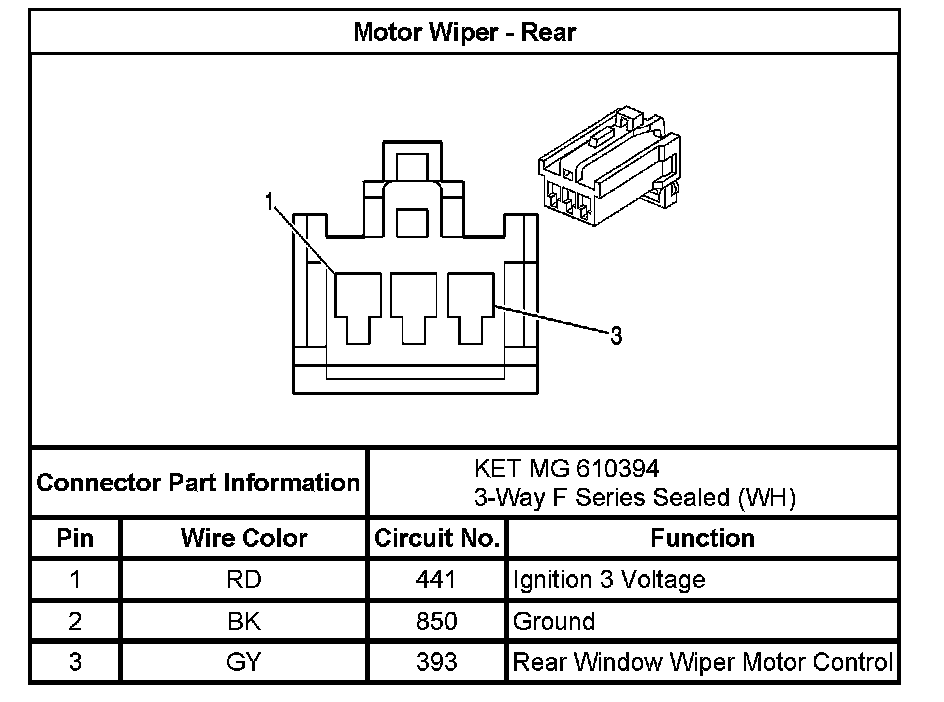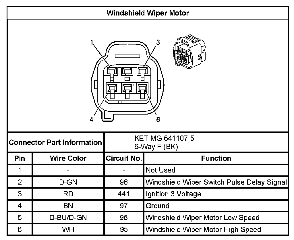 Wiper/Washer Connector End Views (Hatchback)