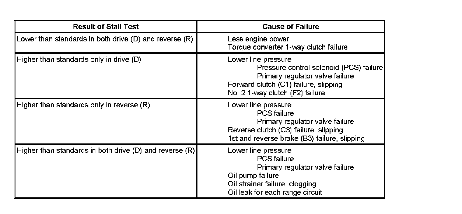 The purpose of the stall test is to inspect the overall performance of the automatic transmission (A/T) and the engine by measuring the stall speed in drive (D) and reverse (R) range.