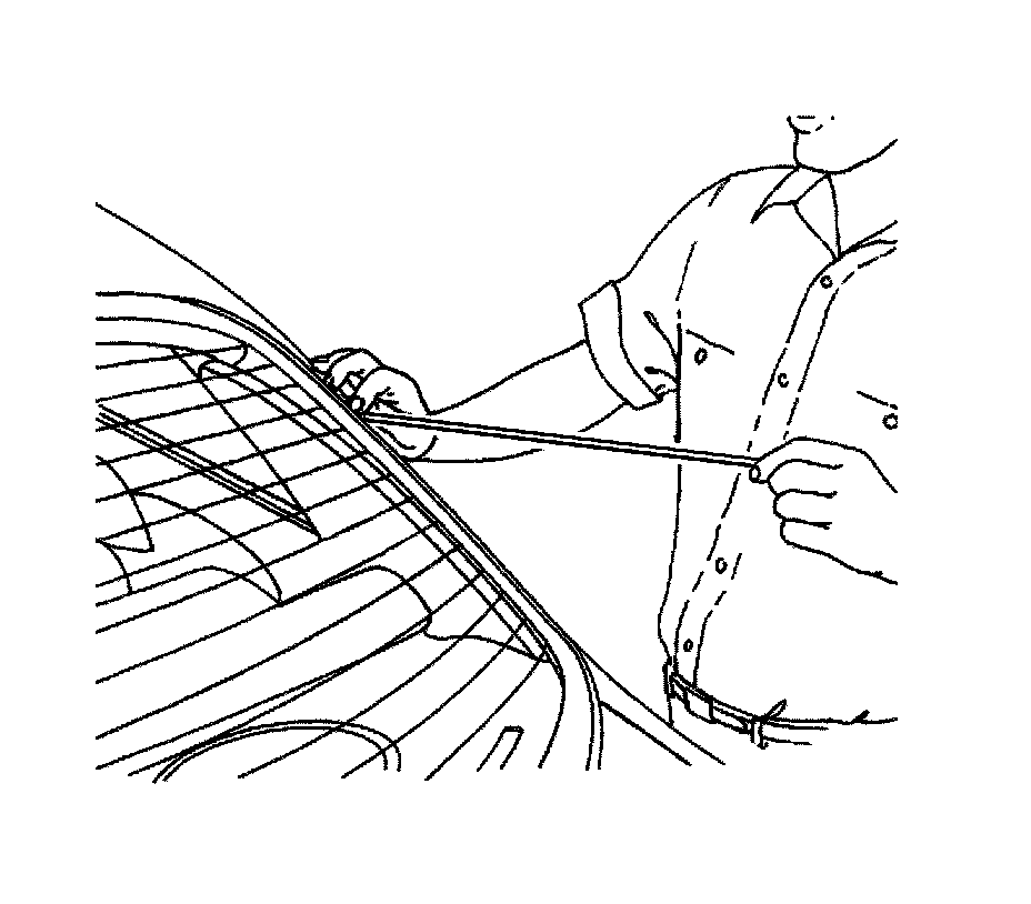 4. Using the J 24402-A (1), cut the adhesive around the rear window.