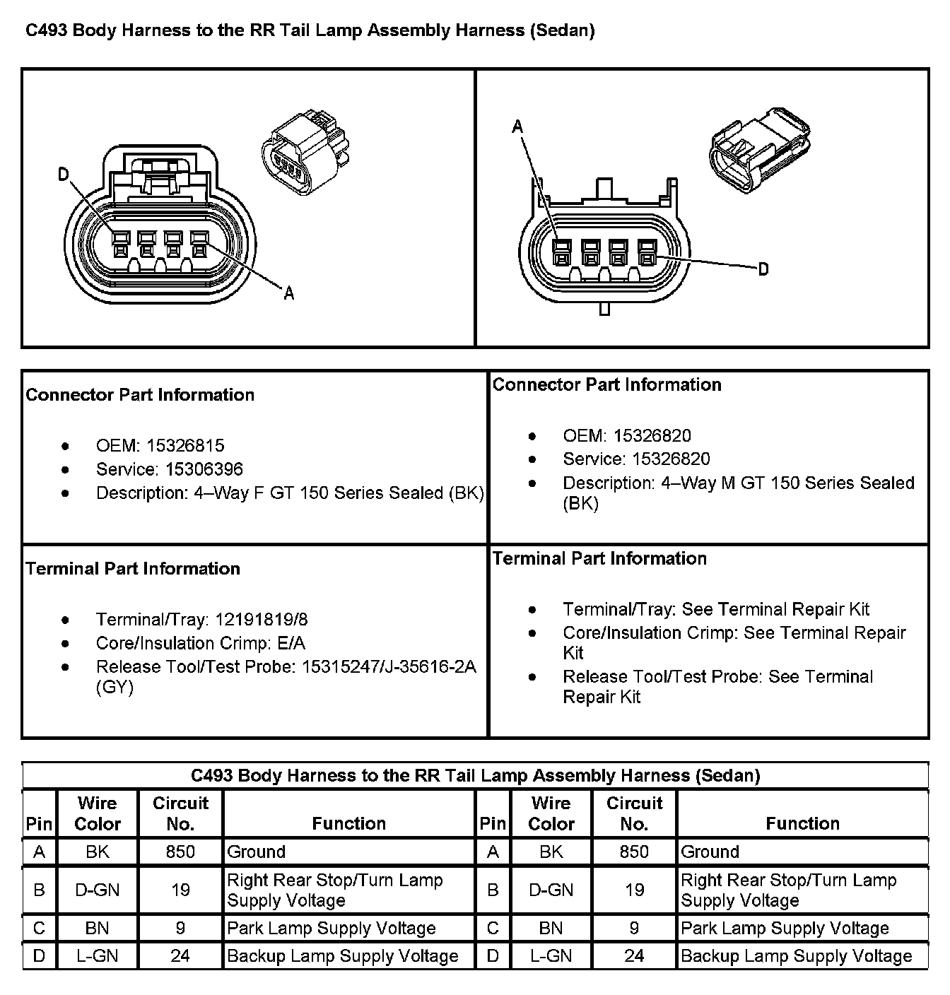 C493 Body Harness To The RR Tail Lamp Assembly Harness (Sedan):