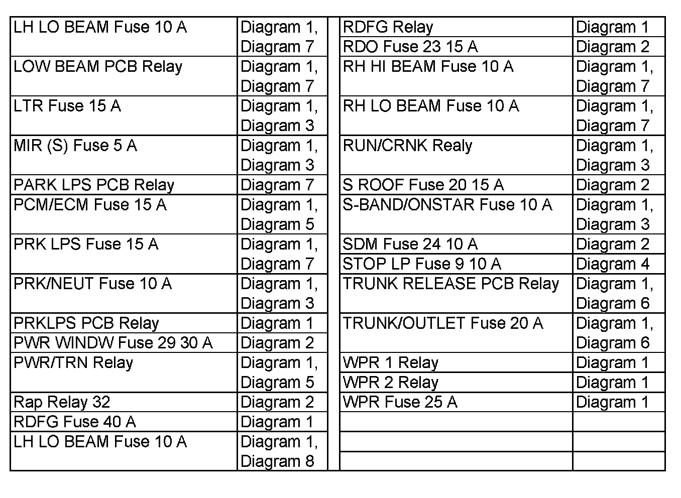 Power Distribution Diagram Index