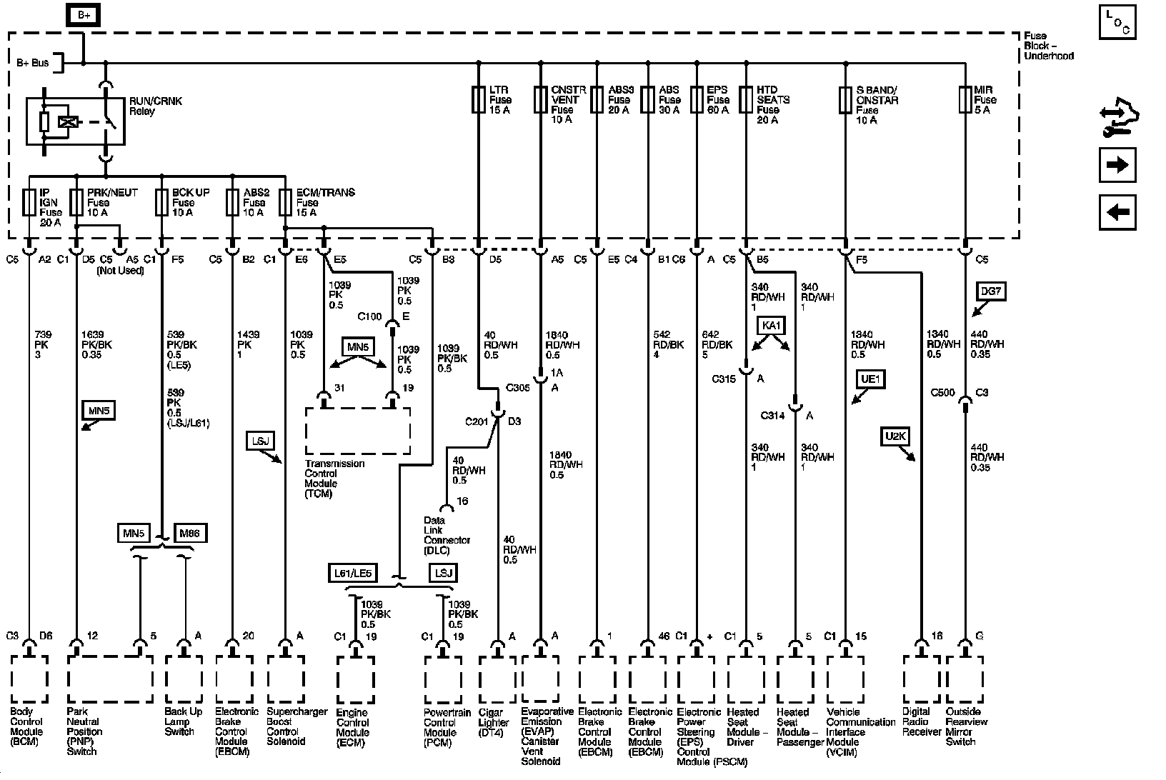Locations: The locations for the Connectors, Grounds, Splices, and Grommets shown within these diagrams can be found via their numbers at Vehicle Locations. Locations