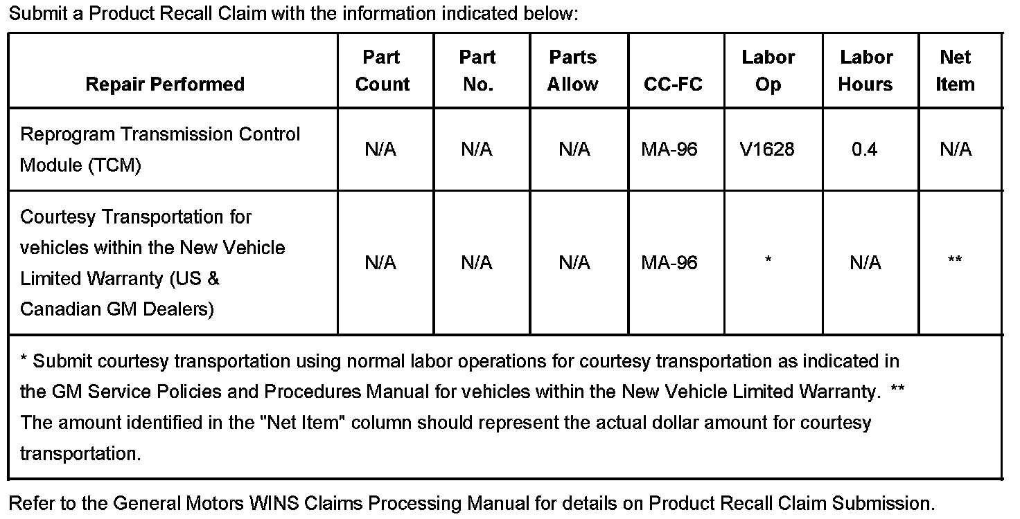 The "Required Field Actions" section of the GM Vehicle Inquiry System (GMVIS) must be checked to determine if a specific vehicle requires this action. If GMVIS indicates that Emission Recall Bulletin 07153 remains 'open' and TCM reprogramming has not taken place, reprogram the TCM using a Tech 2(R) scan tool with the calibration update from Techline Information System (TIS).
