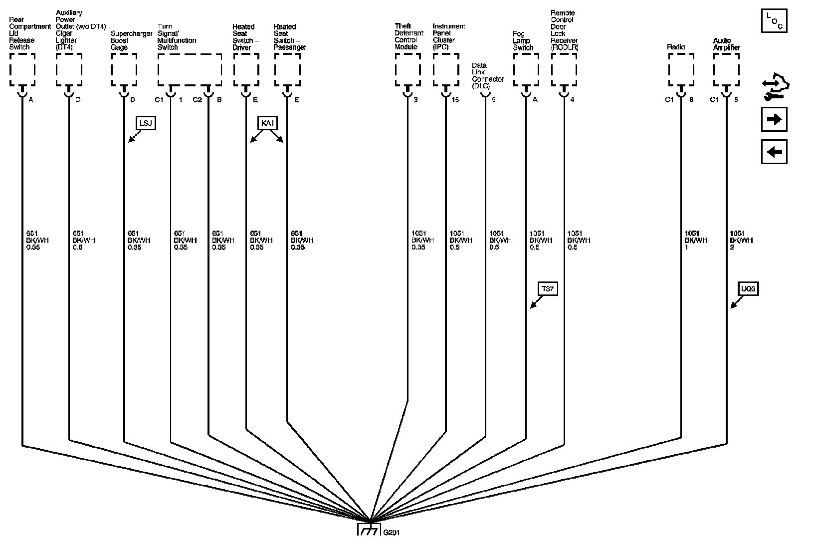 The locations for the Connectors, Grounds, Splices, and Grommets shown within these diagrams can be found via their numbers at Vehicle Locations.