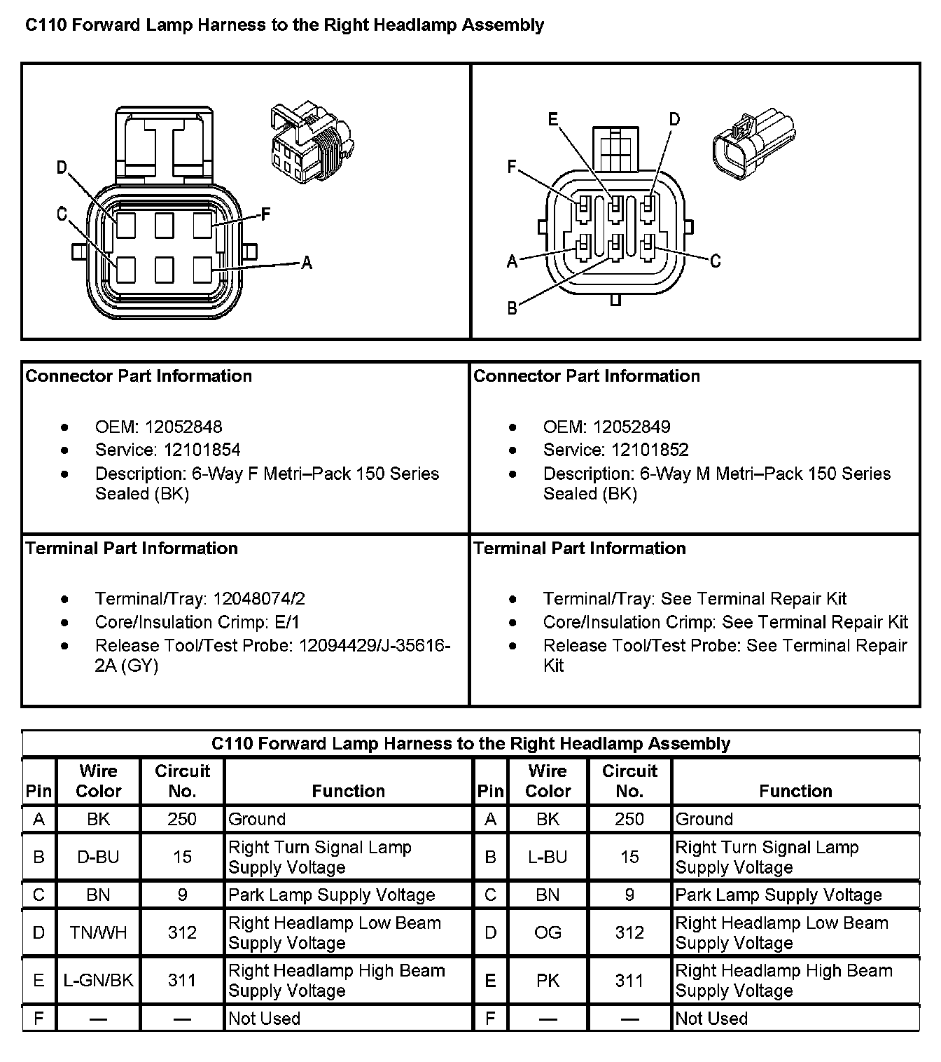 C110 Forward Lamp Harness To The Right Headlamp Assembly: