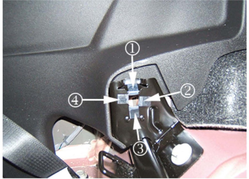 Install four pieces of the tape to the right rear seat back pivot bracket: