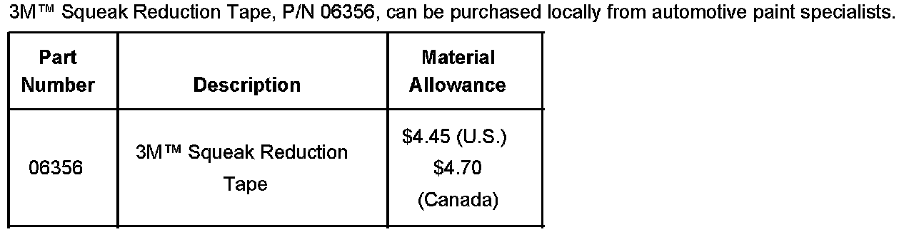 Install two pieces of 3M(TM) Squeak Reduction Tape, P/N 06356, or equivalent around the left and right rear seat cushion retainers (1). Refer to Rear Seat Cushion Replacement in SI.