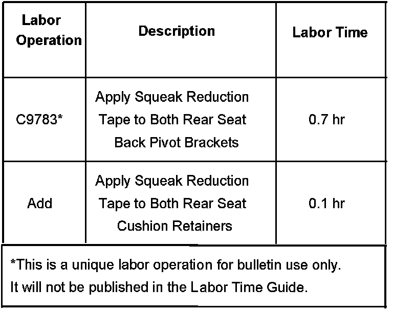 Squeak or Chirp Noise From Rear Split Folding Seat Back or Seat Cushion While Driving (Install Squeak Reduction Tape)