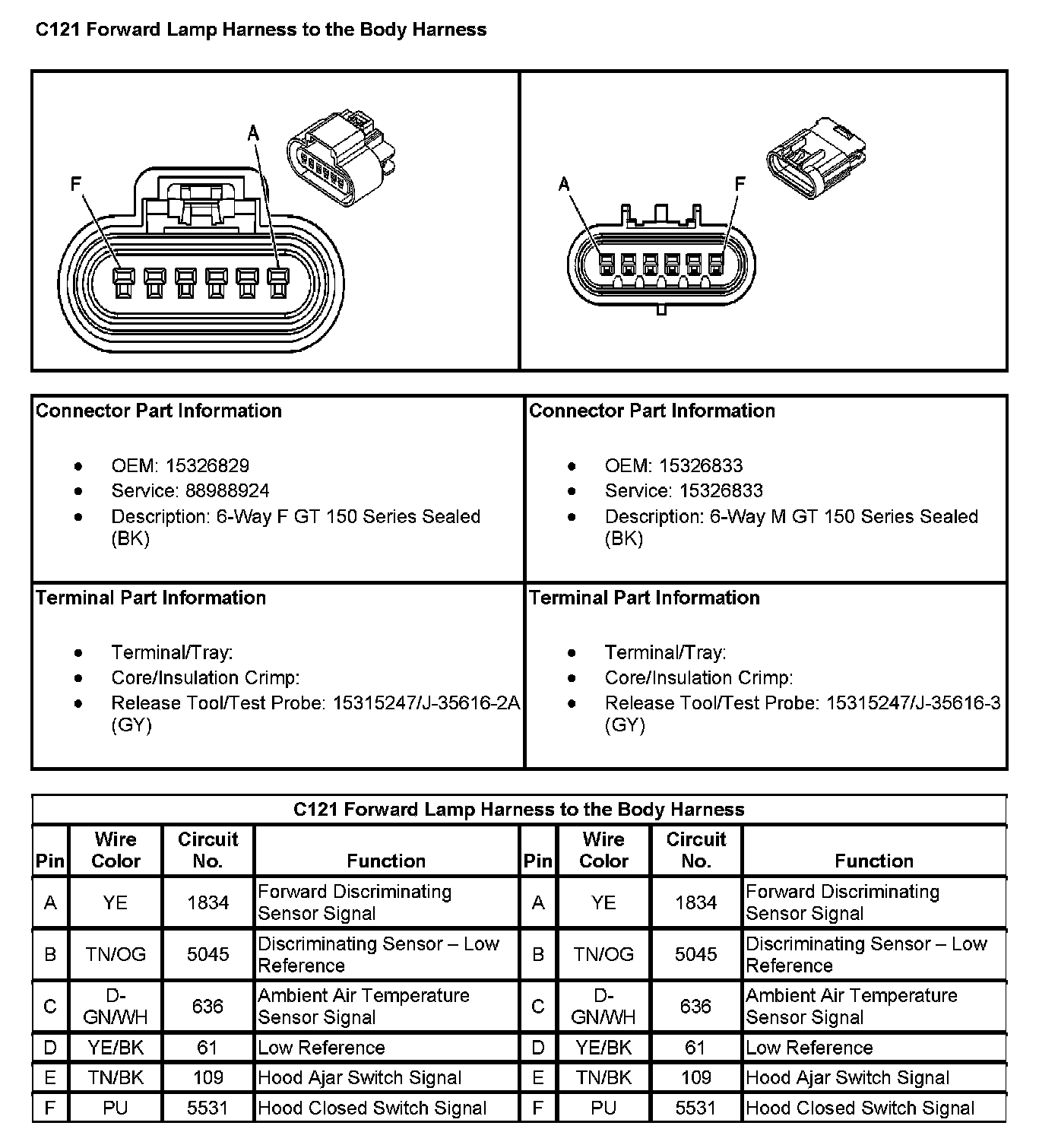 C121 Forward Lamp Harness To The Body Harness: