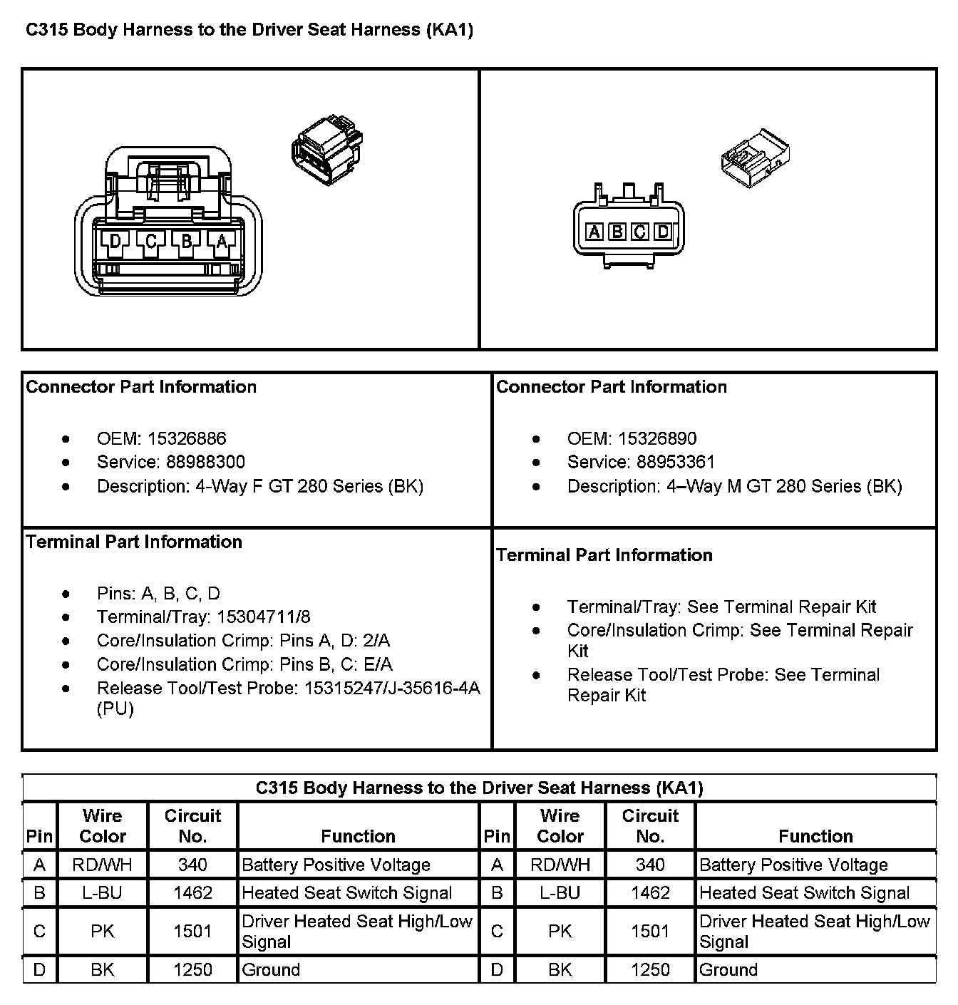 C315 Body Harness To The Driver Seat Harness (With RPO Code KA1):