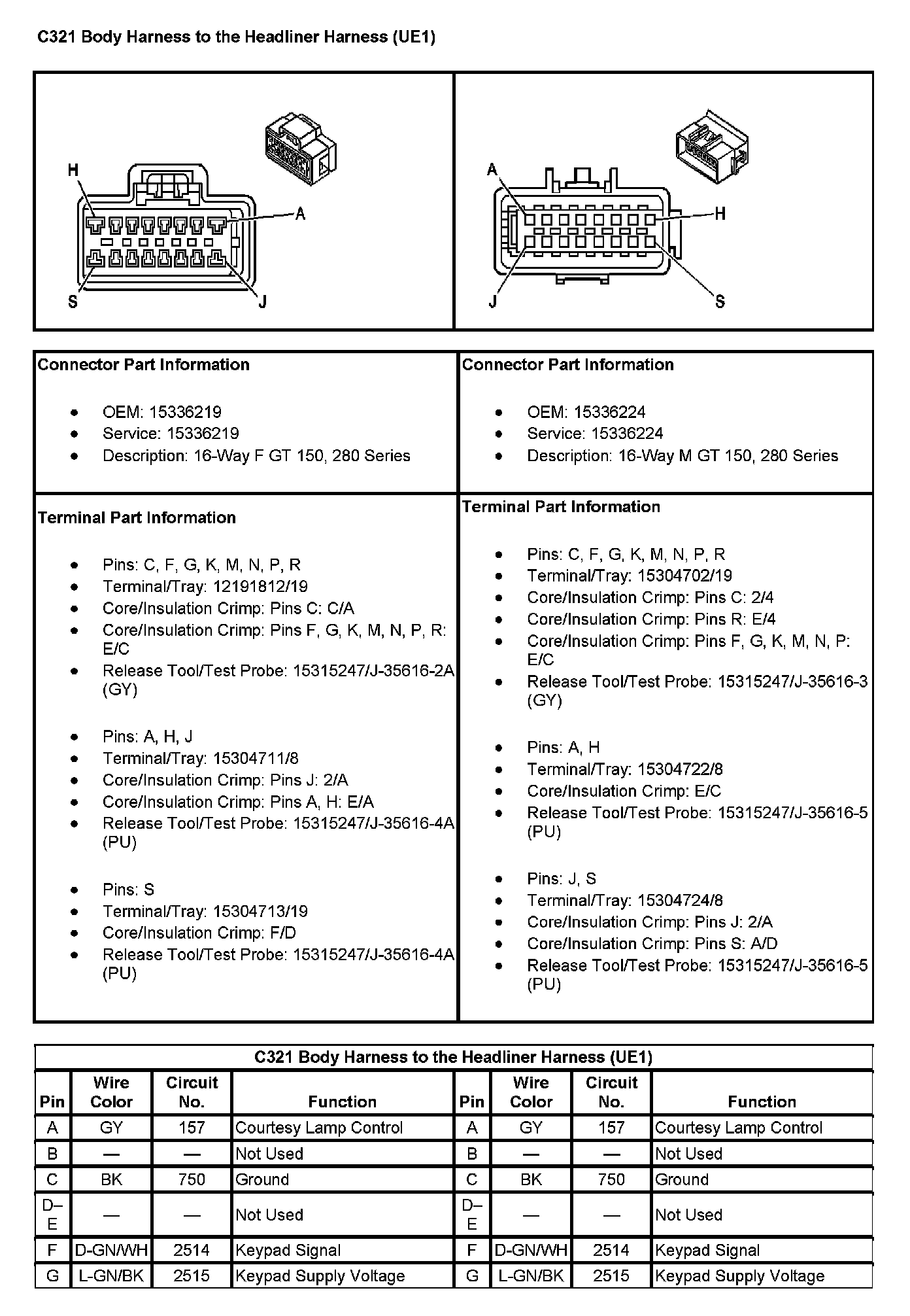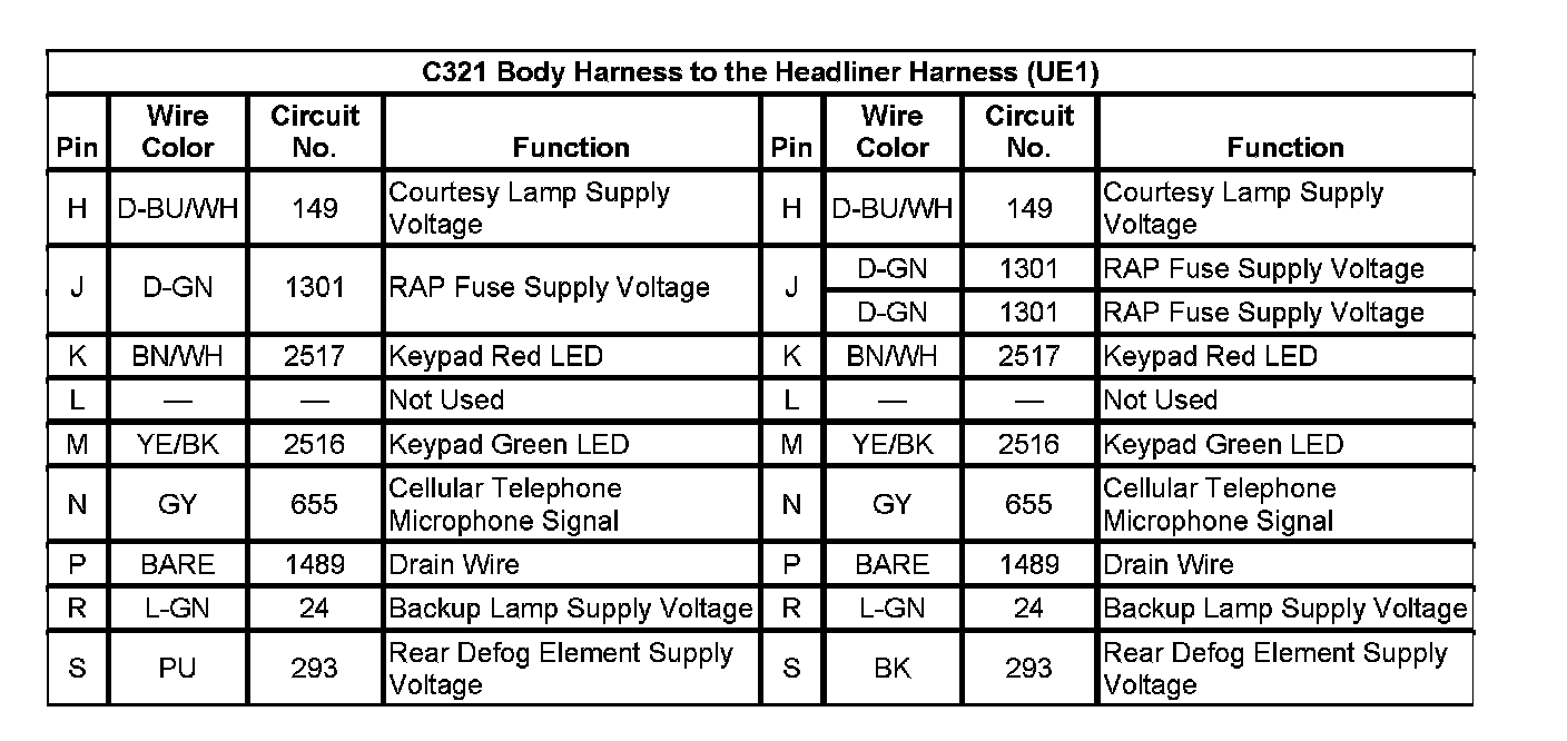 C321 Body Harness To The Headliner Harness (With RPO Code UE1) (Pin H To S):