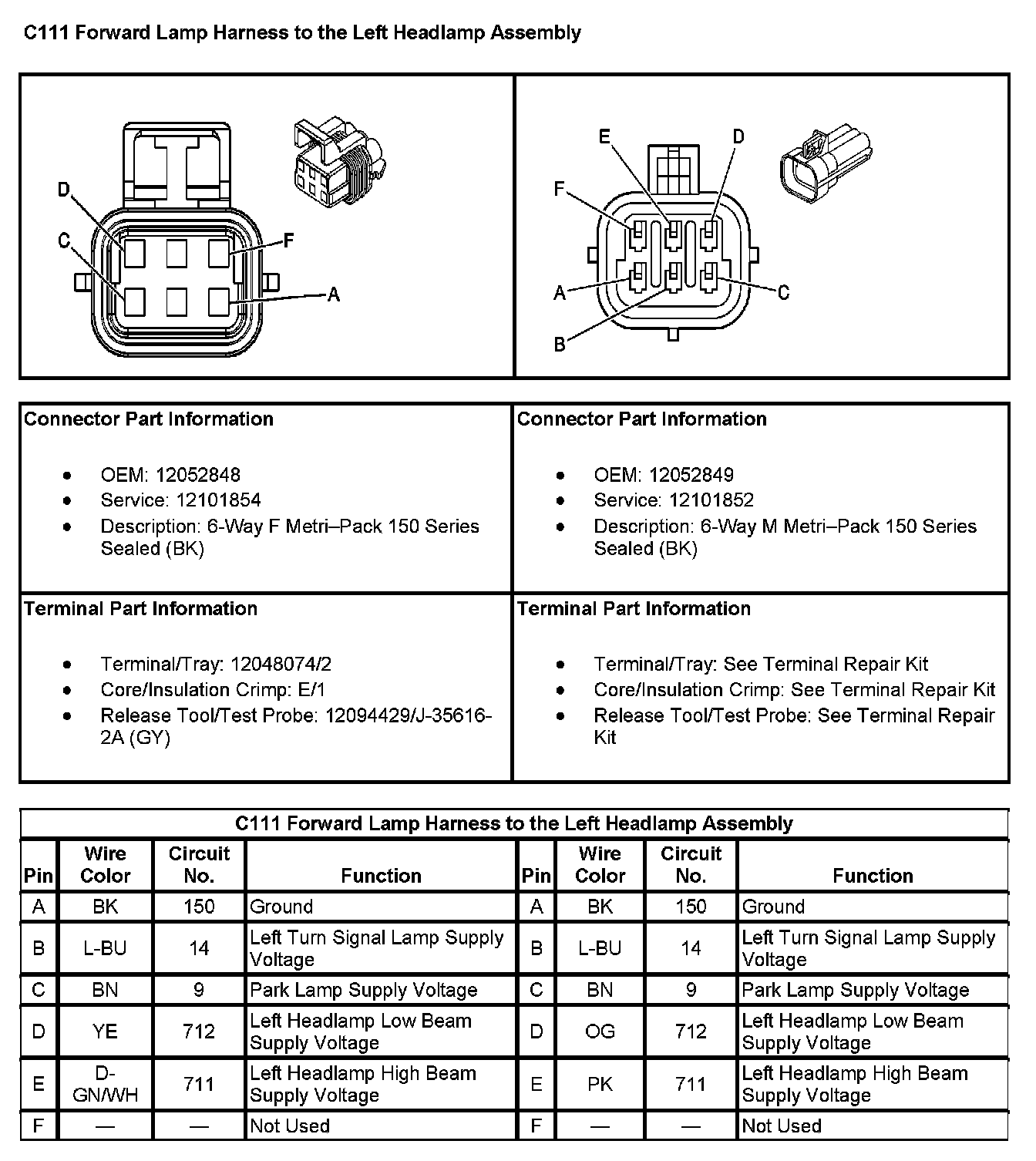 C111 Forward Lamp Harness To The Left Headlamp Assembly:
