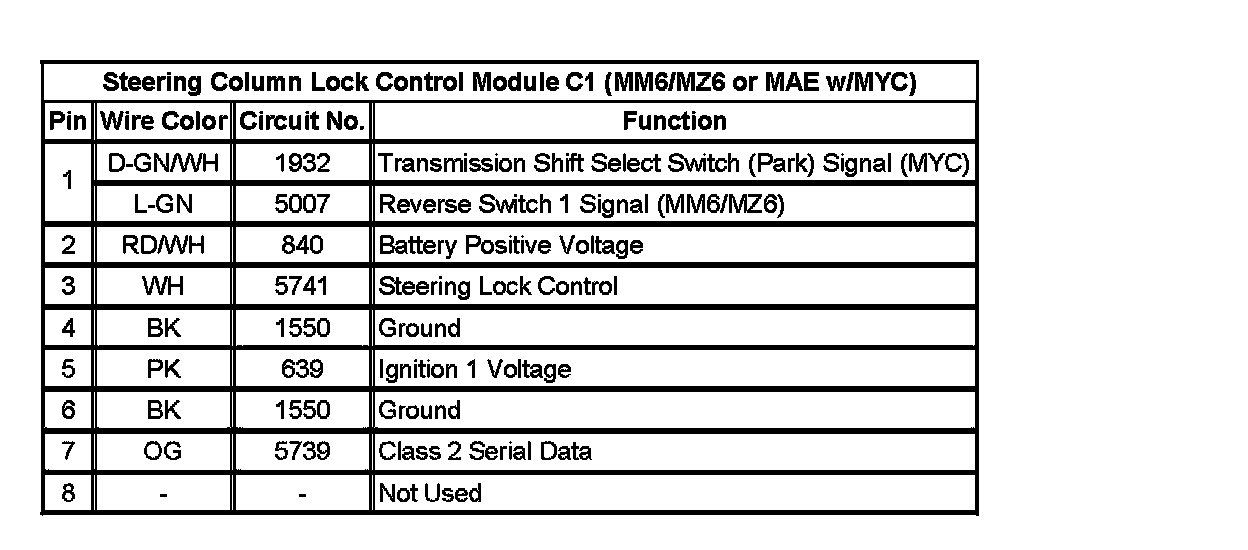 Steering Column Lock Control Module C1 (MM6/MZ6 Or MAE W/MYC):