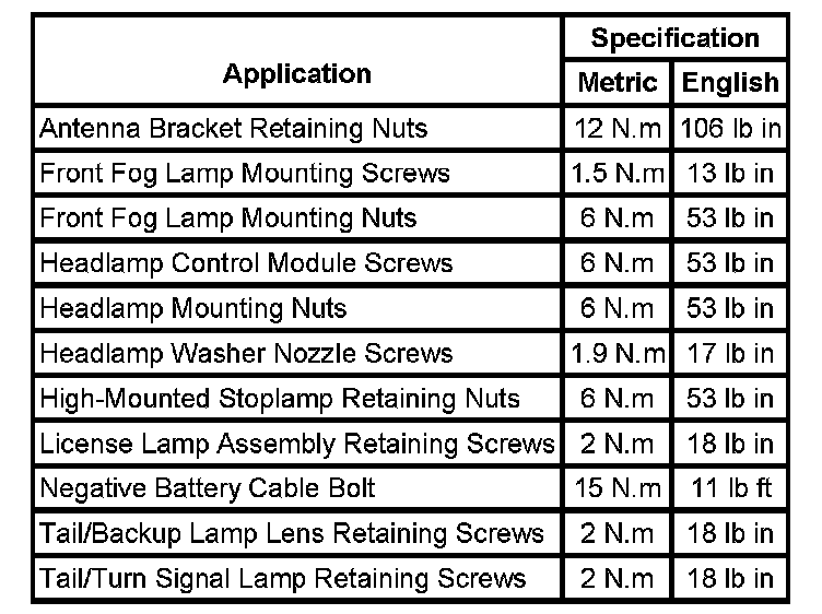 Lighting and Horns: Specifications