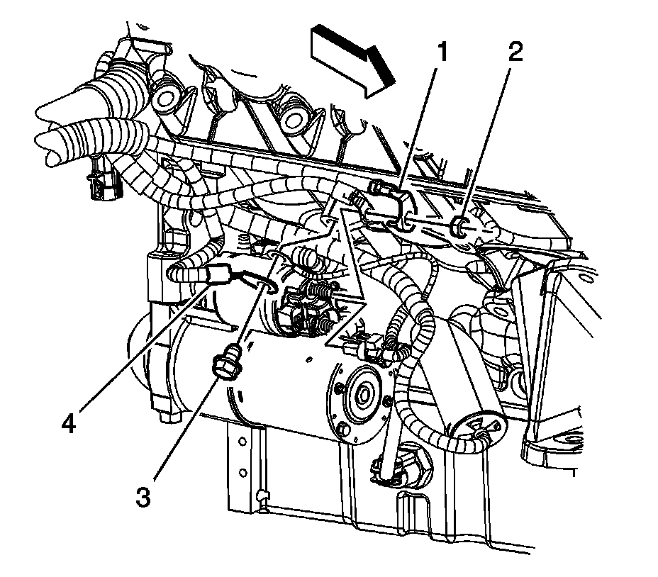 6. Remove the battery positive/negative cable to engine bolt (3).