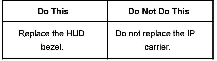 Use care to avoid damage to the head up display (HUD) lens when removing and installing the HUD bezel. The HUD lens is fragile. Failure to carefully remove/install the bezel can lead to HUD lens damage.