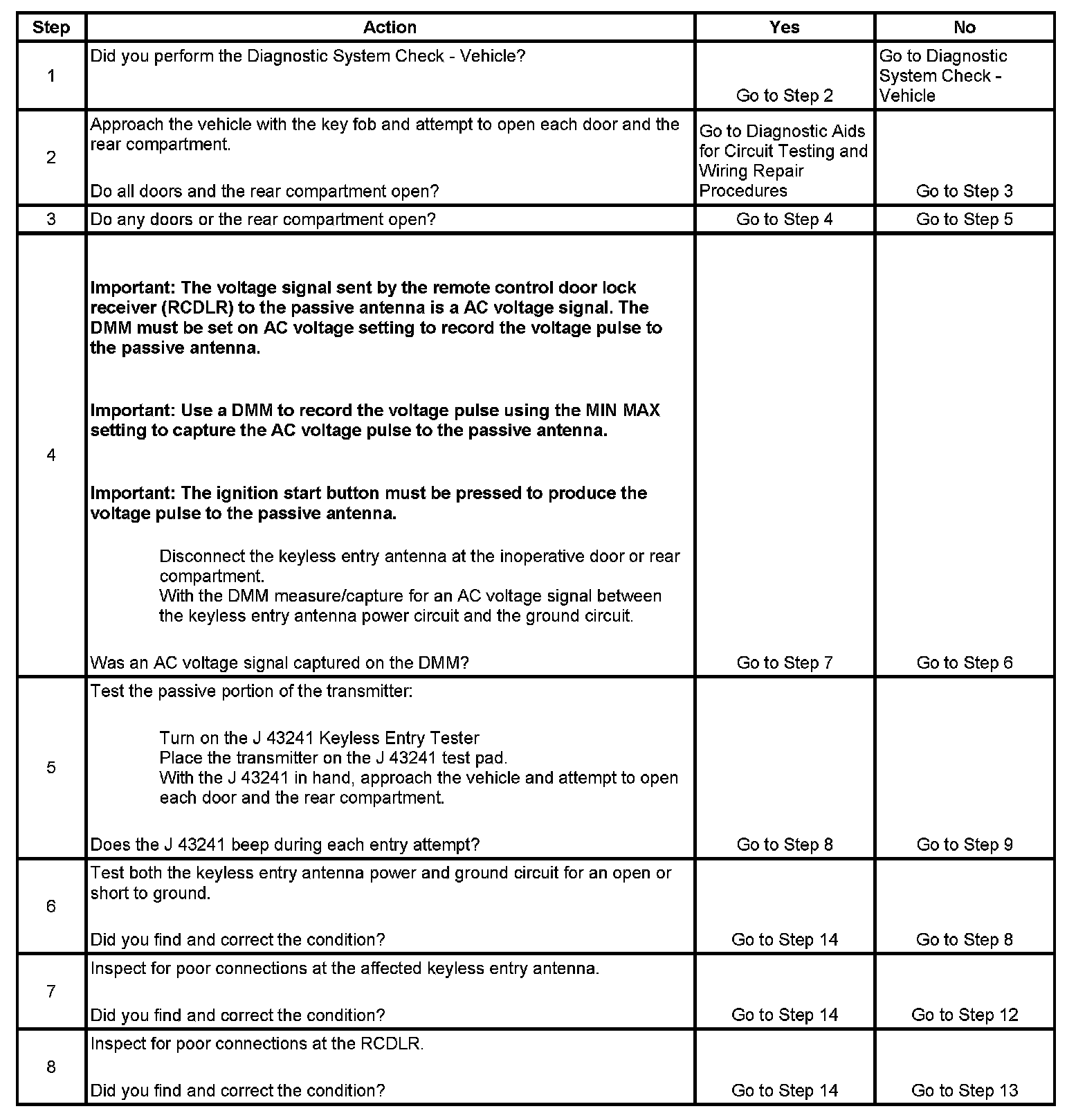 Keyless Entry System Inoperative (Passive)