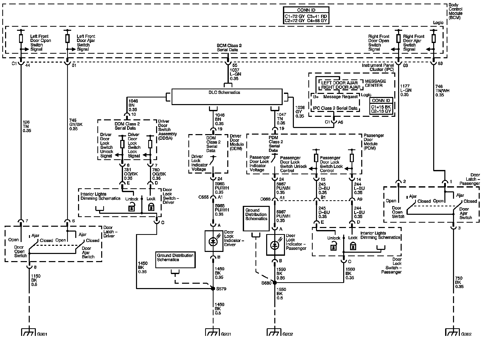 Locations: The locations for the Connectors, Grounds, Splices, and Grommets shown within these diagrams can be found via their numbers at Vehicle Locations. Locations