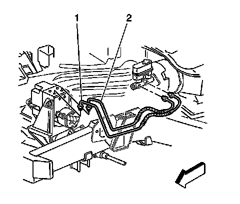 11. Install the brake pipes from the master cylinder (1, 2) to the BPMV in the same location as removed.