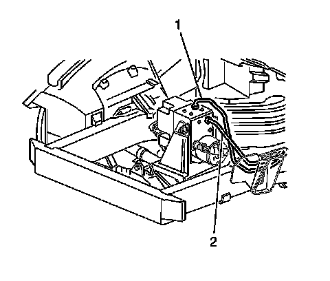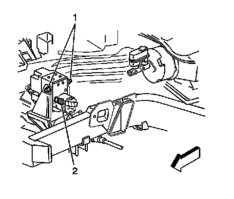 6. Remove the brake pipes from the BPMV (1, 2) to the front brake calipers, noting the location.