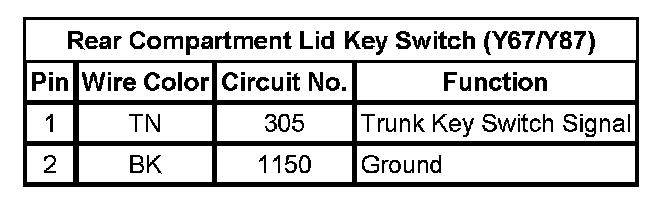 Rear Compartment Lid Key Switch (Y67/Y87)