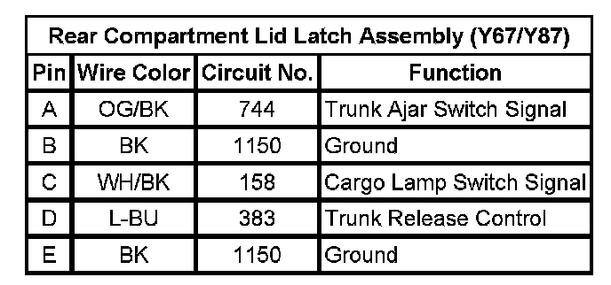 Rear Compartment Lid Latch Assembly (Y67/Y87)