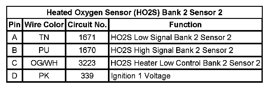 Heated Oxygen Sensor (HO2S) Bank 2 Sensor 2