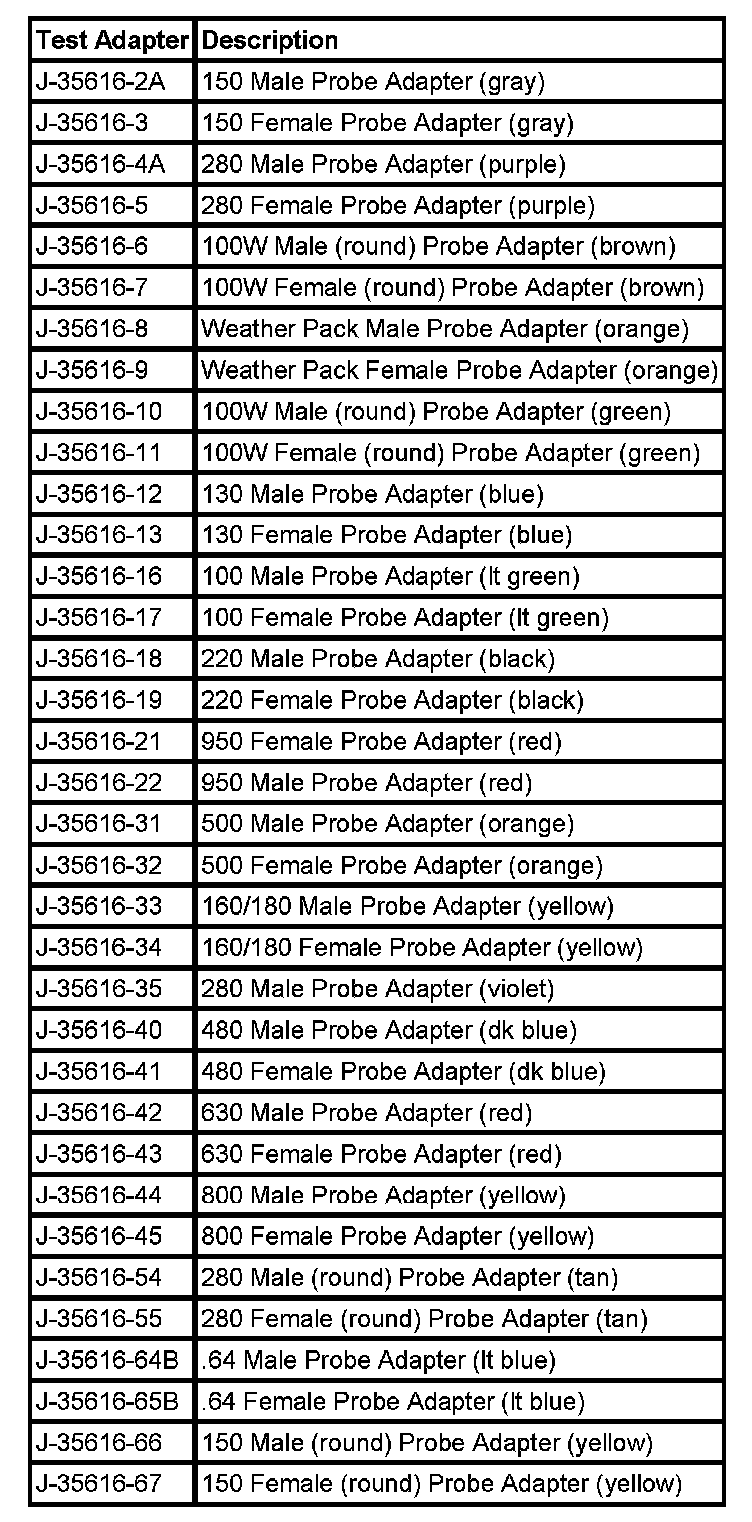 Refer to the following table as a guide in selecting the correct test adapter for frontprobing connectors: