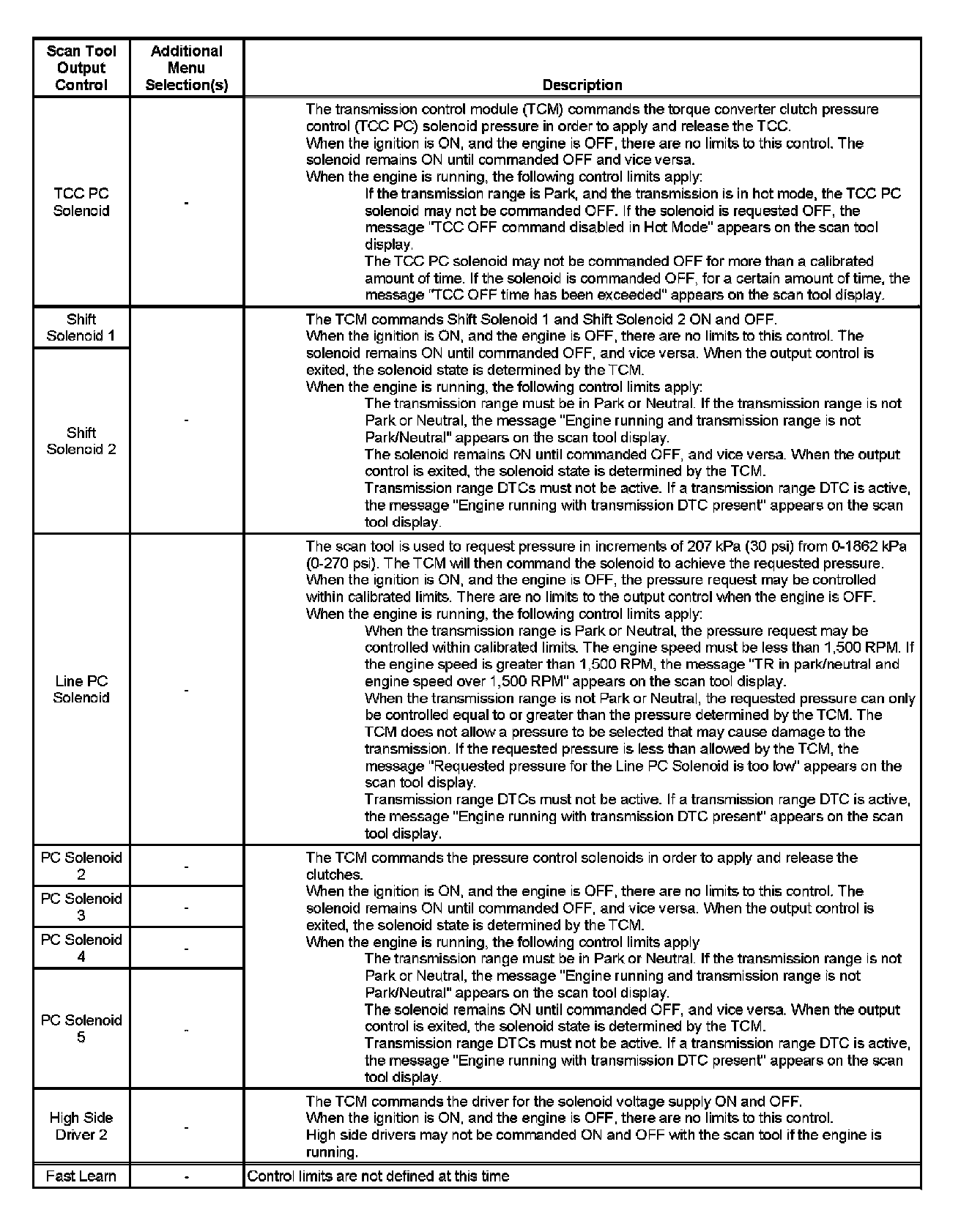 Scan Tool Output Controls