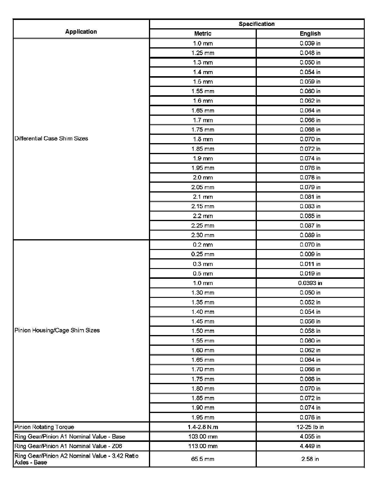 Rear Axle Specifications (Part 2):