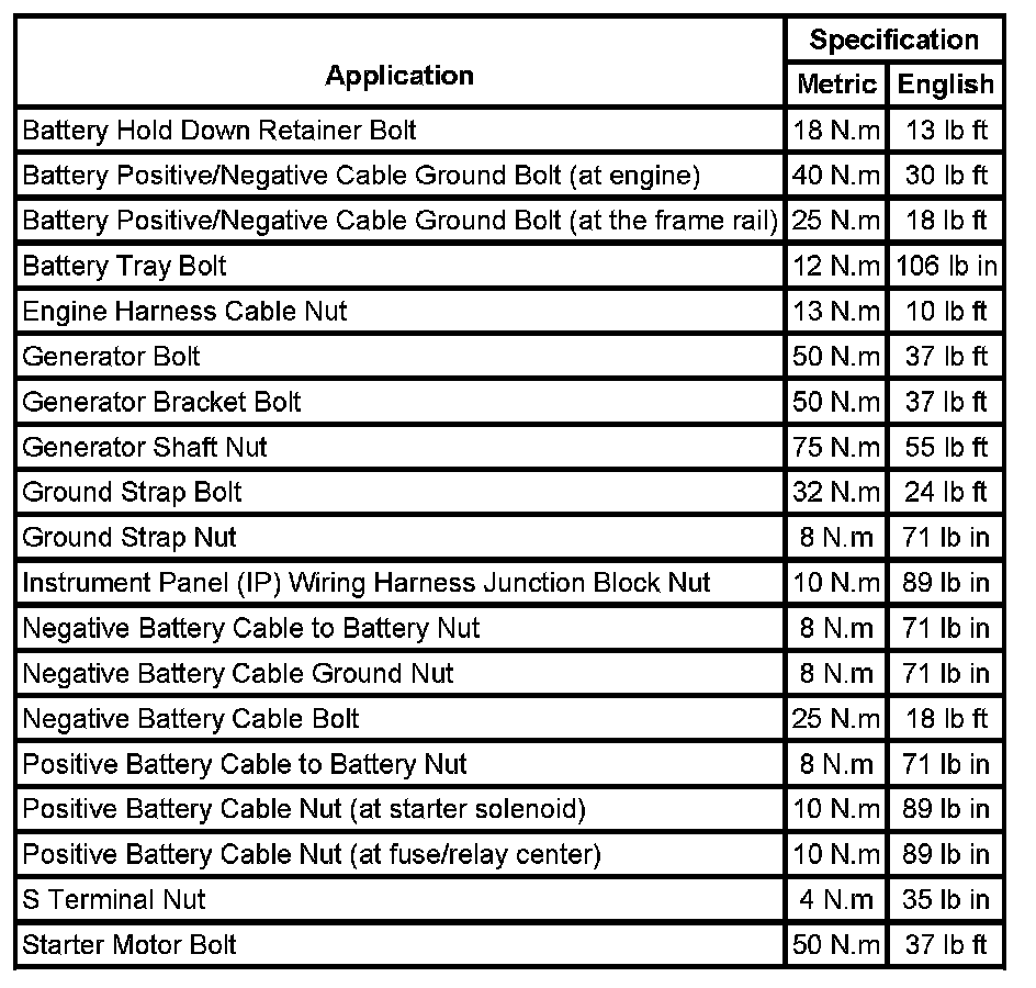 Starting and Charging: Specifications