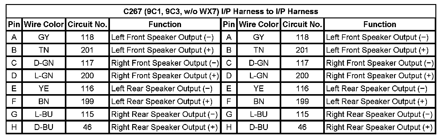 C267 (9C1,9C3,w/o WX7) I/P Harness To I/p Harness (Pin A To H):