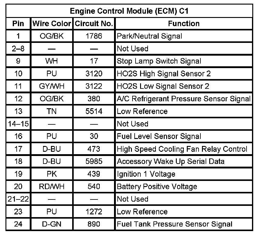 Engine Control Module (ECM) C1 (Pin 1 To 24):