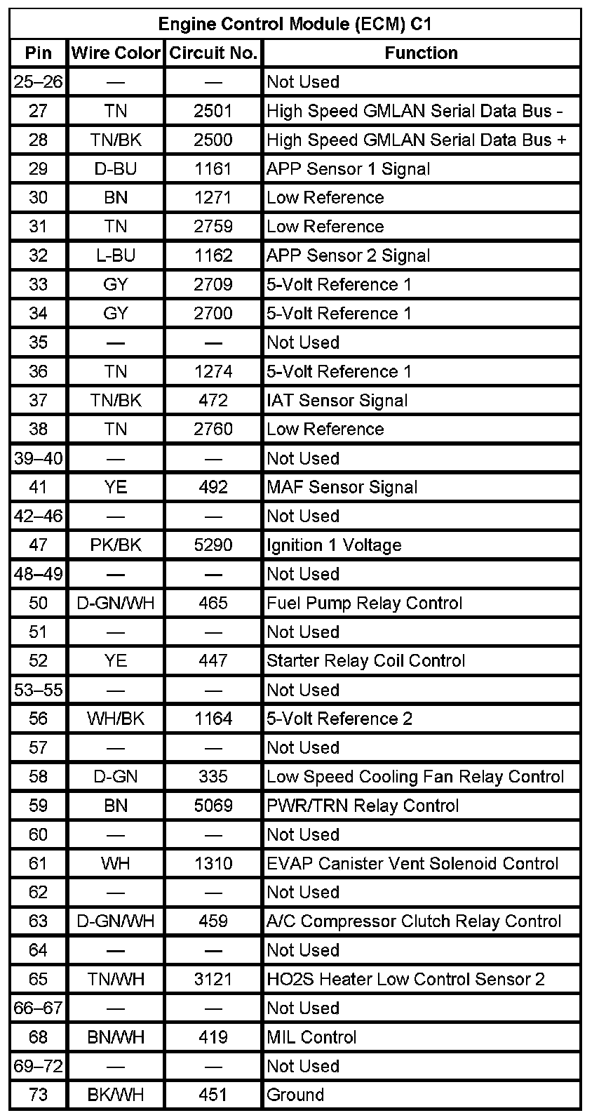 Engine Control Module (ECM) C1 (Pin 25 To 73):